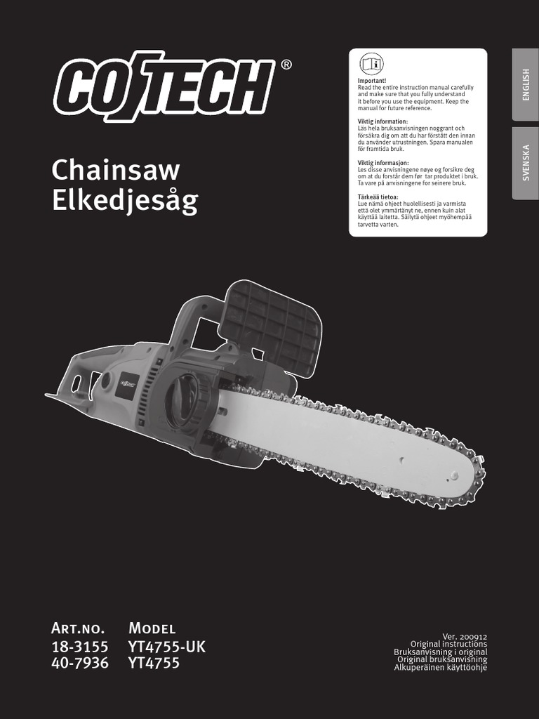 - Chainsaw chain: The chainsaw chain is the most important spare part for your Cotech YT4755. It's important to replace the chain regularly, especially if you use your chainsaw frequently.